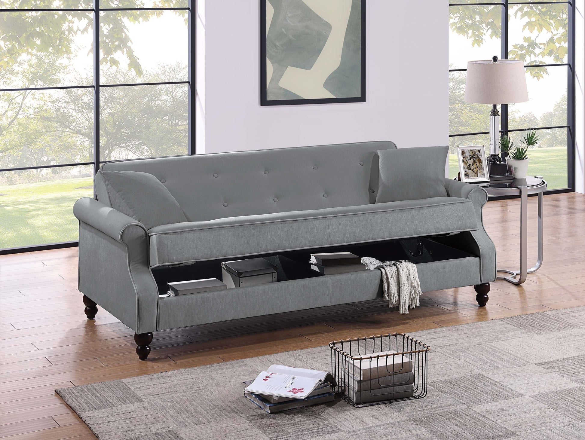 - Le rangement caché sous le siège offre une solution pratique pour garder les couvertures, les livres ou les oreillers soigneusement rangés