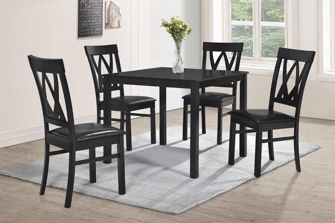 Ensemble de table à manger carrée 5 pièces Latitude Run en bois finition noir expresso avec dossier en double « X ». Cet ensemble comprend une table et quatre chaises. Dimensions de la table : 91 x 91 x 71 cm (H). Dimensions des chaises : environ 5,5 x 6,7 x 10 cm (H).